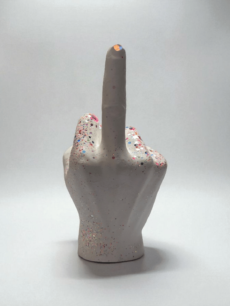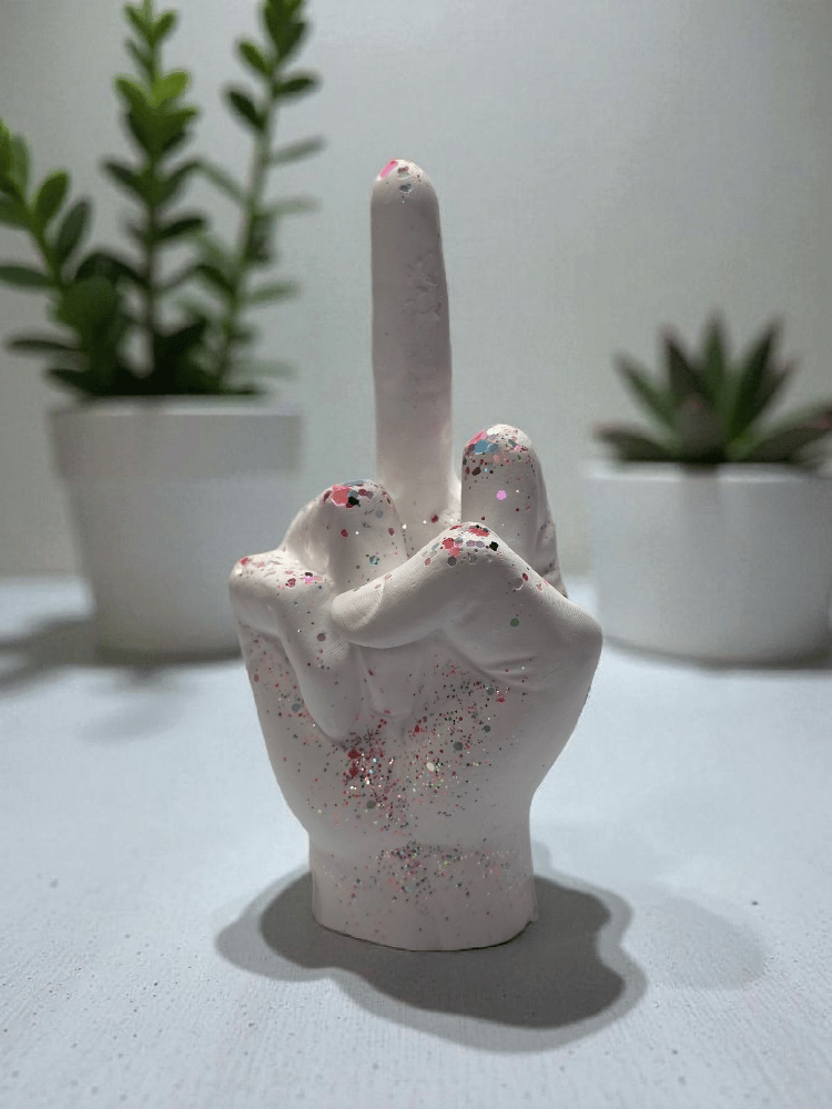 Add a little sass to your space with this bold and cheeky ring holder. Hand-poured with ceramic resin and glitter, no two are ever the same—each one has its own attitude! Standing approximately 3.75 inches tall, it's the perfect spot to stash your rings, keys, or just make a rebellious statement on your desk, vanity, or shelf.